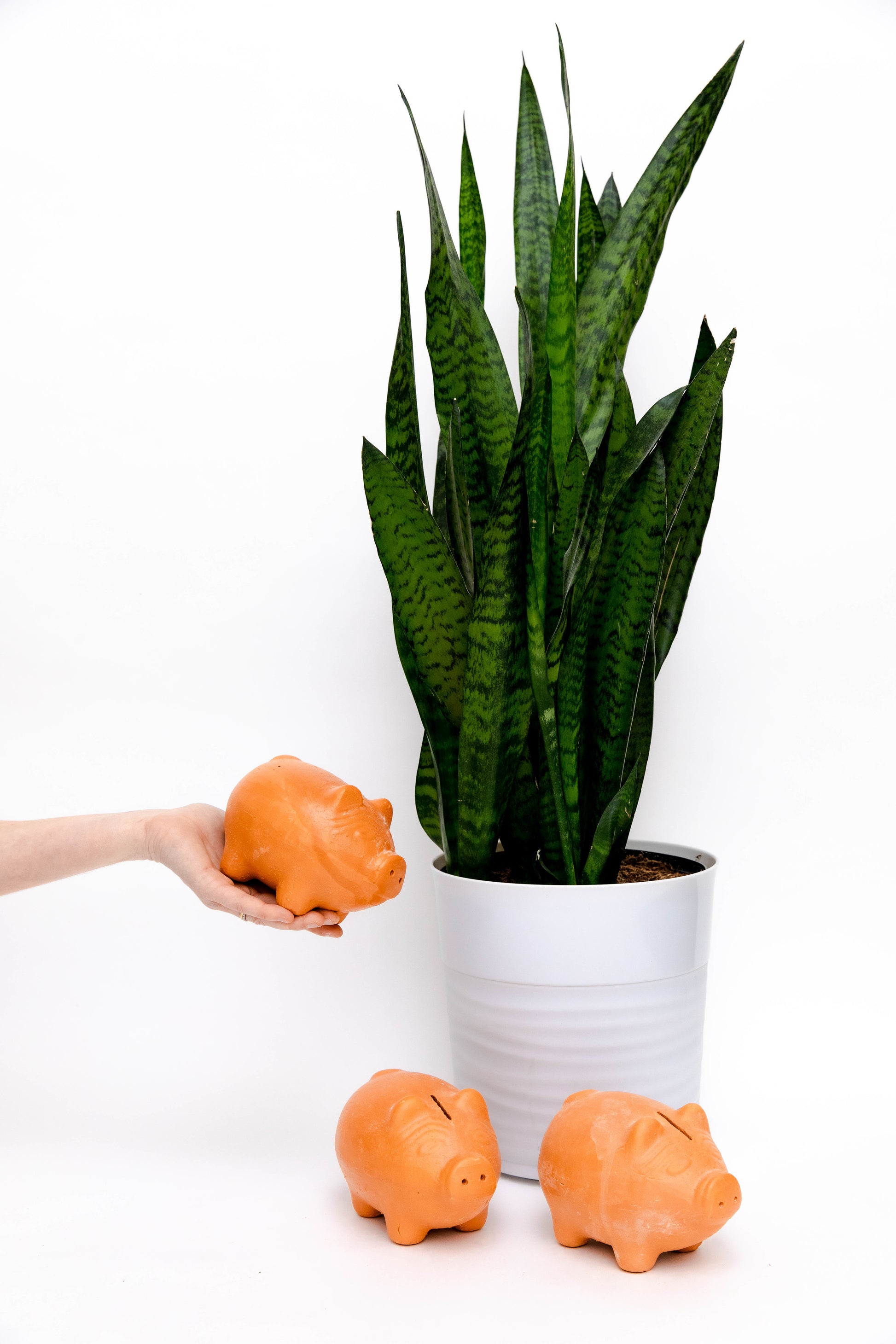 Mini decorative piggy bank handmade from red clay / terracotta by a family of artisans in a small mountain village outside of Bogota. Pots can vary in style and sizes due to their handmade nature.
