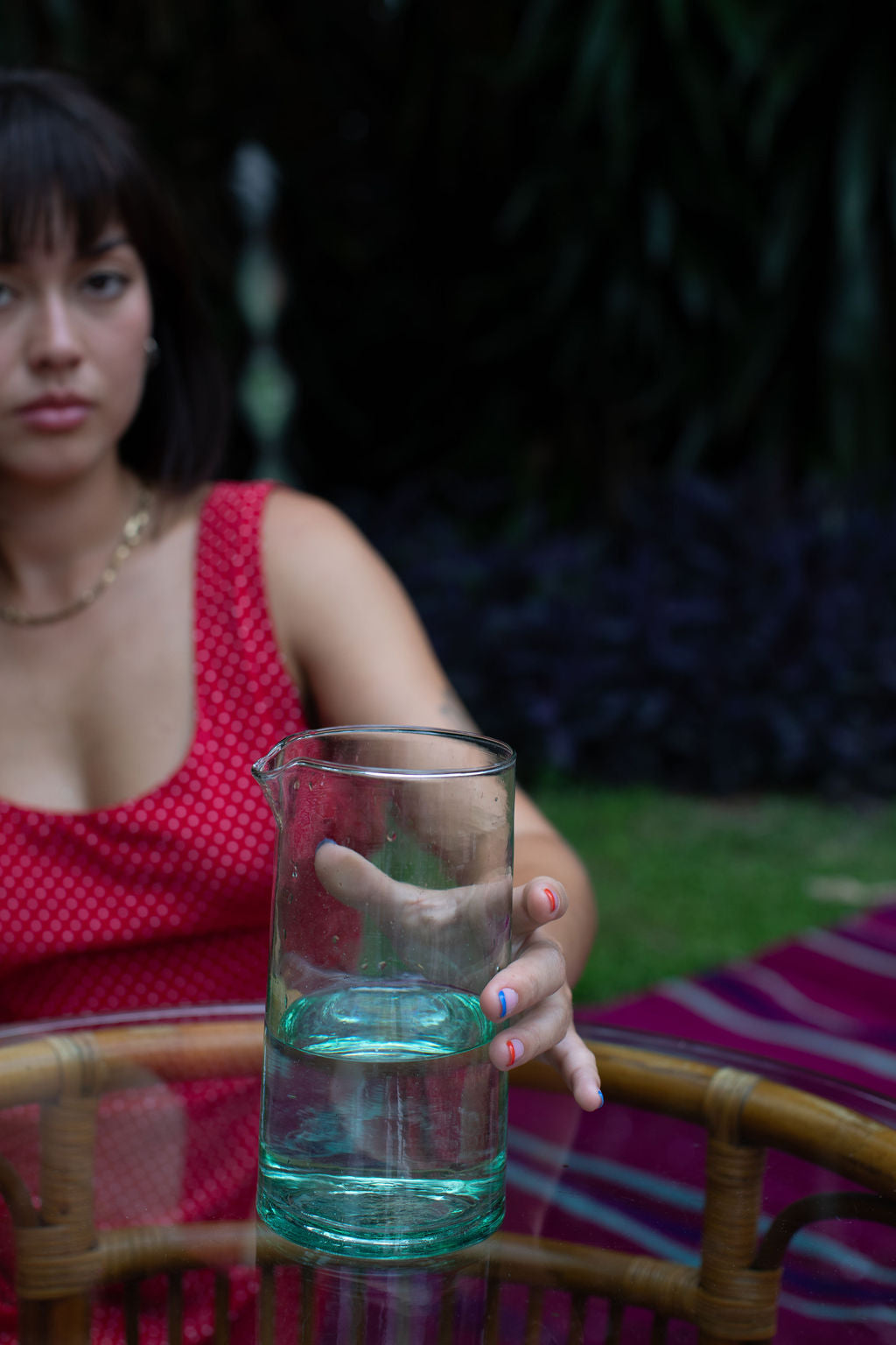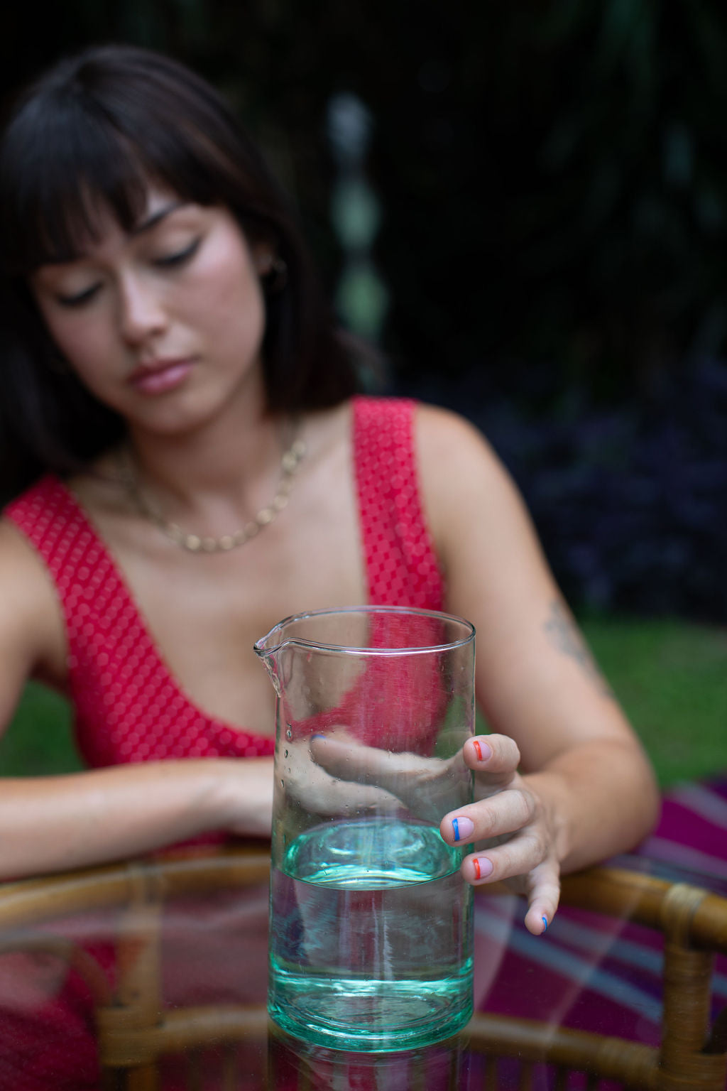 Due to the handmade nature of our products, each is a work of art; a one-of-a-kind piece with slight variations in color, texture and shape. Our glassware is hand blown in Marrakesh and made of recycled glass. Sustainability never looked so good.