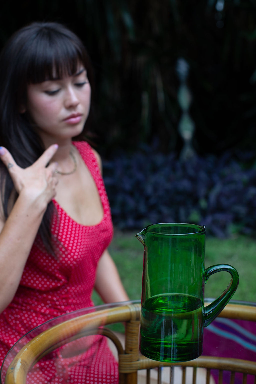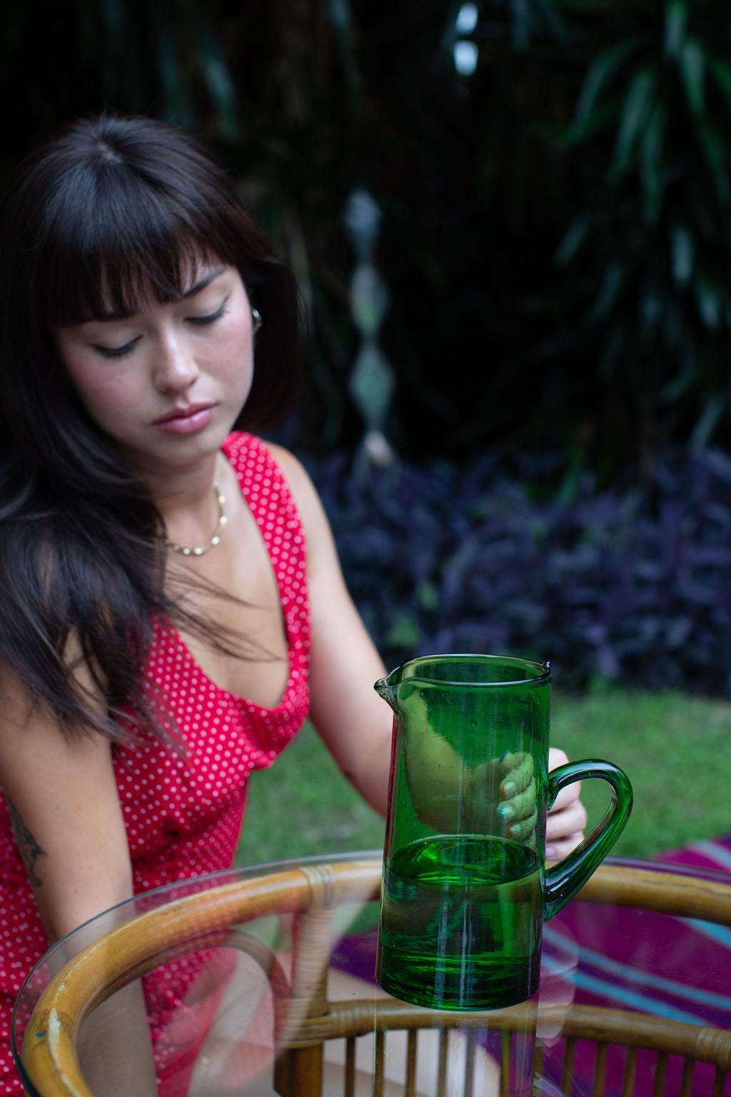 Our Green Cocktail Carafe is sleek and striking with a handcrafted spout for easy pouring. Its straightforward design works best for crafting batch drinks of your favorite iced tea or cocktail, so you can feel like you’re happy hour-ing in Morocco from your own backyard.
