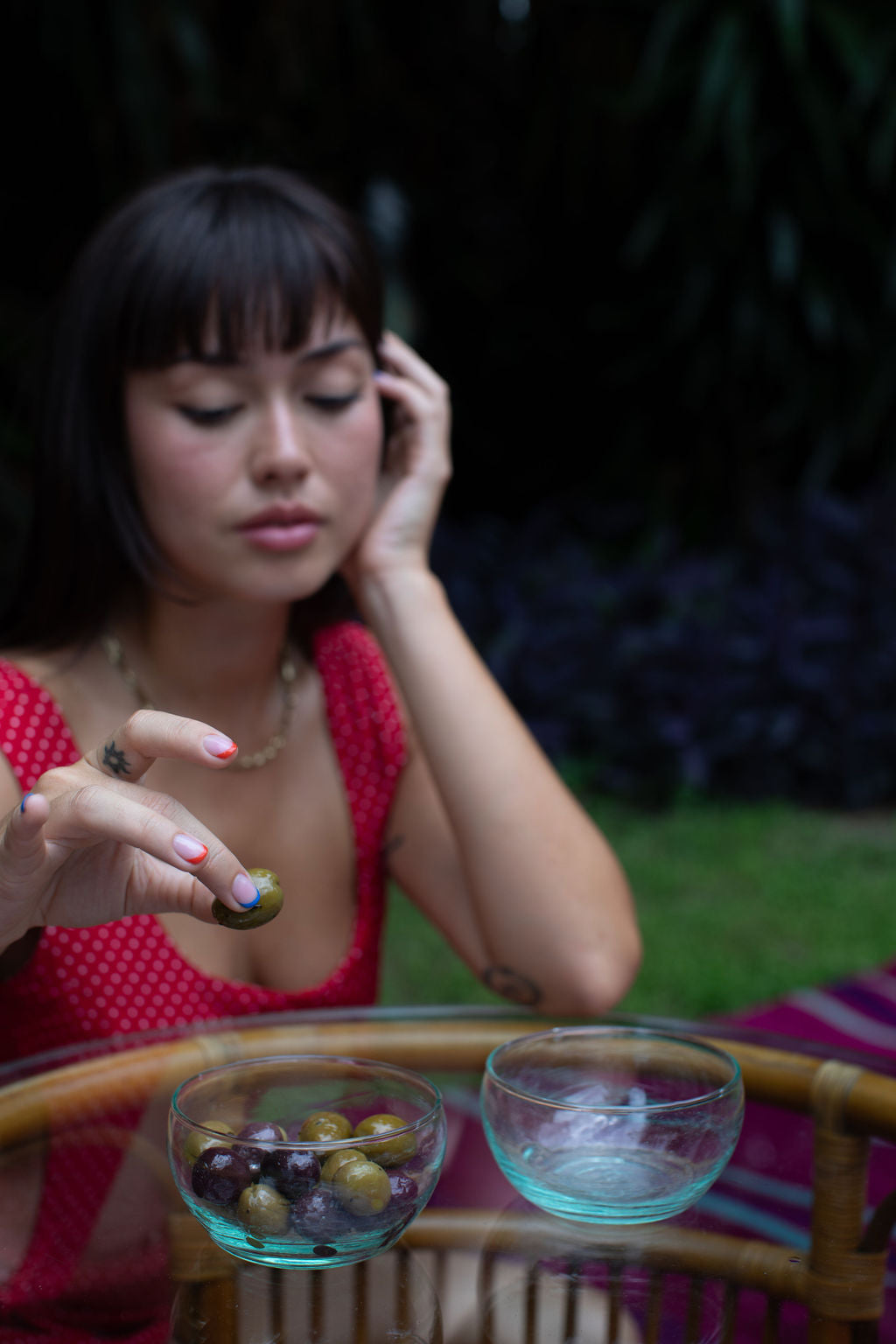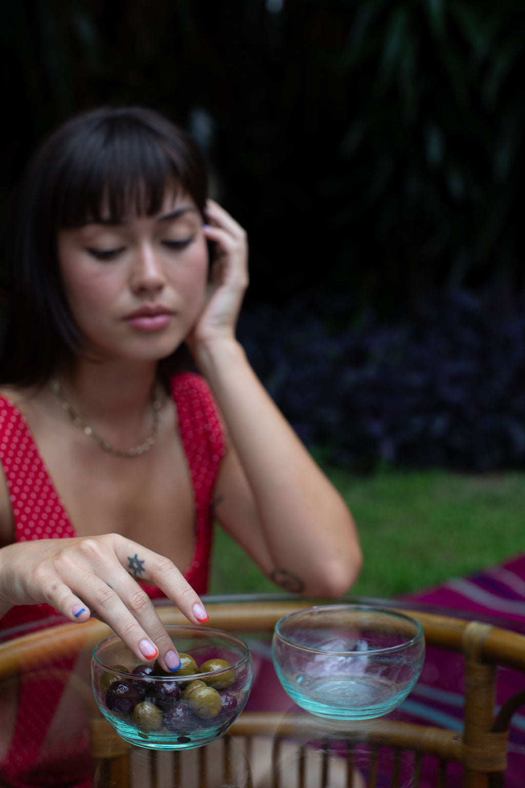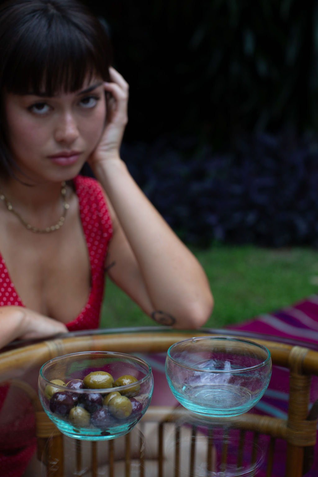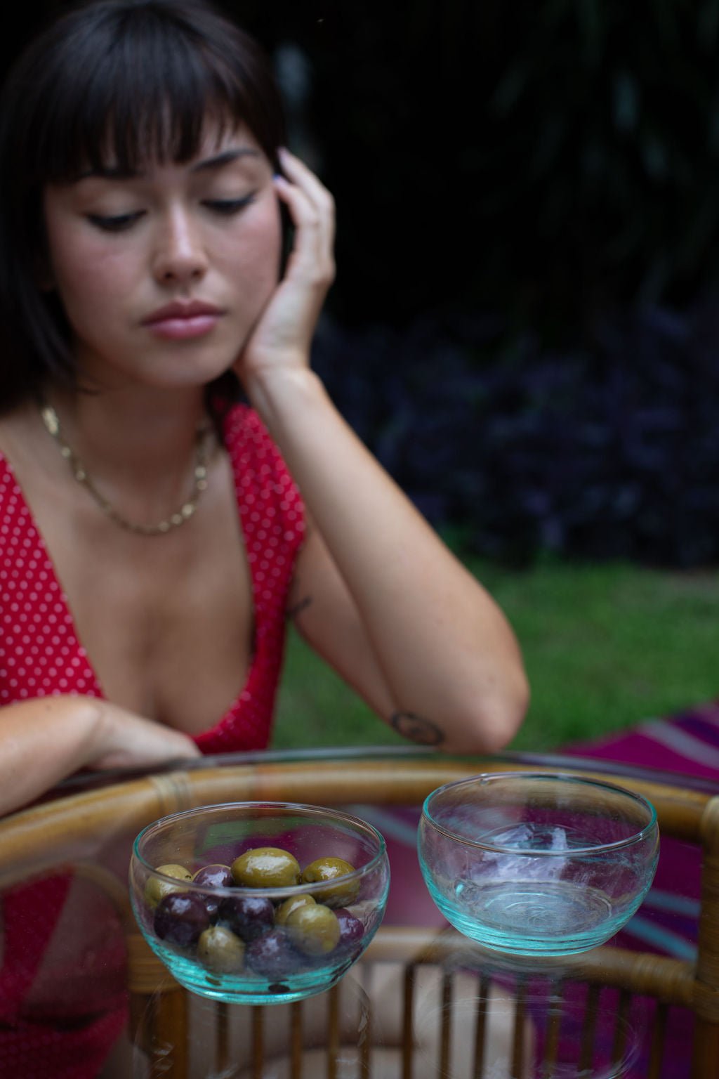 Due to the handmade nature of our products, each is a work of art; a one-of-a-kind piece with slight variations in color, texture and shape. Our glassware is hand blown in Marrakesh and made of recycled glass. Sustainability never looked so good.