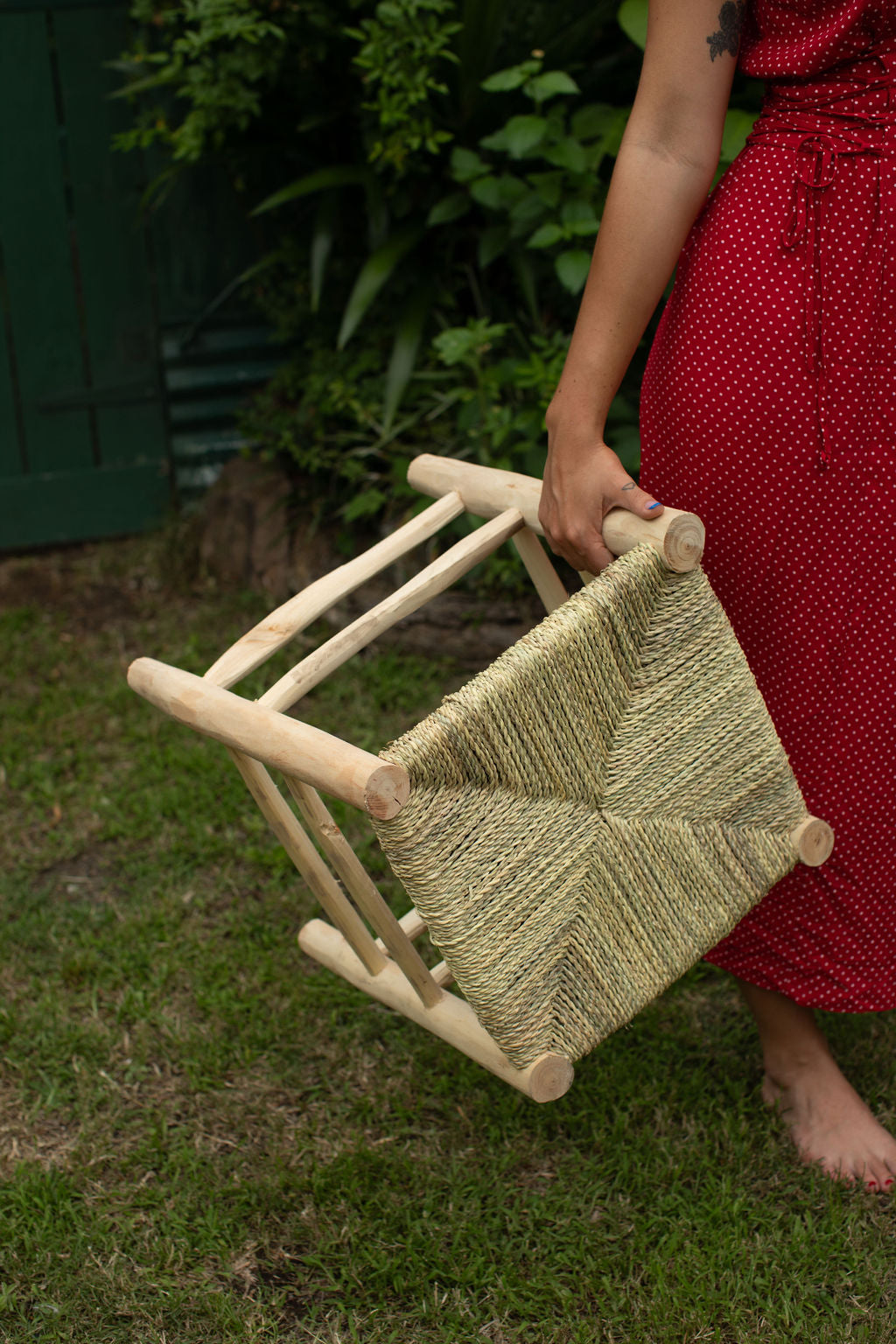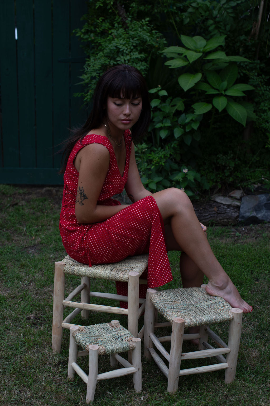 Set of 3 nesting stools made from natural rope and eucalyptus wood. Perfect for a plant stand, a natural nursery decor or for a kid's playroom.