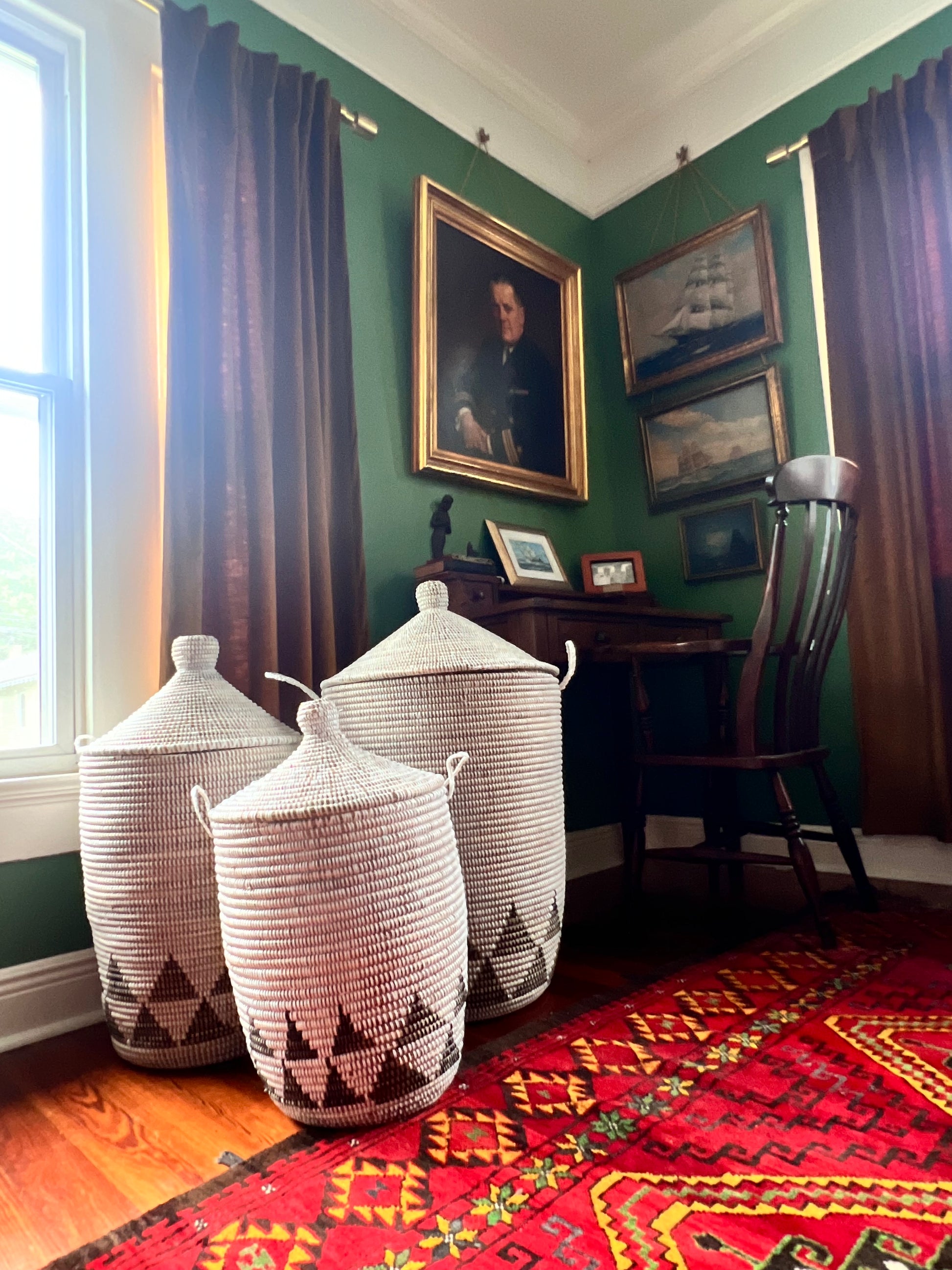 This set of 3 baskets can be used for laundry; storage for towels, toys, or anything you can think of! This basket is handmade in Senegal by local artisans and will never go out of style. These baskets are woven with straw and recycled plastic.