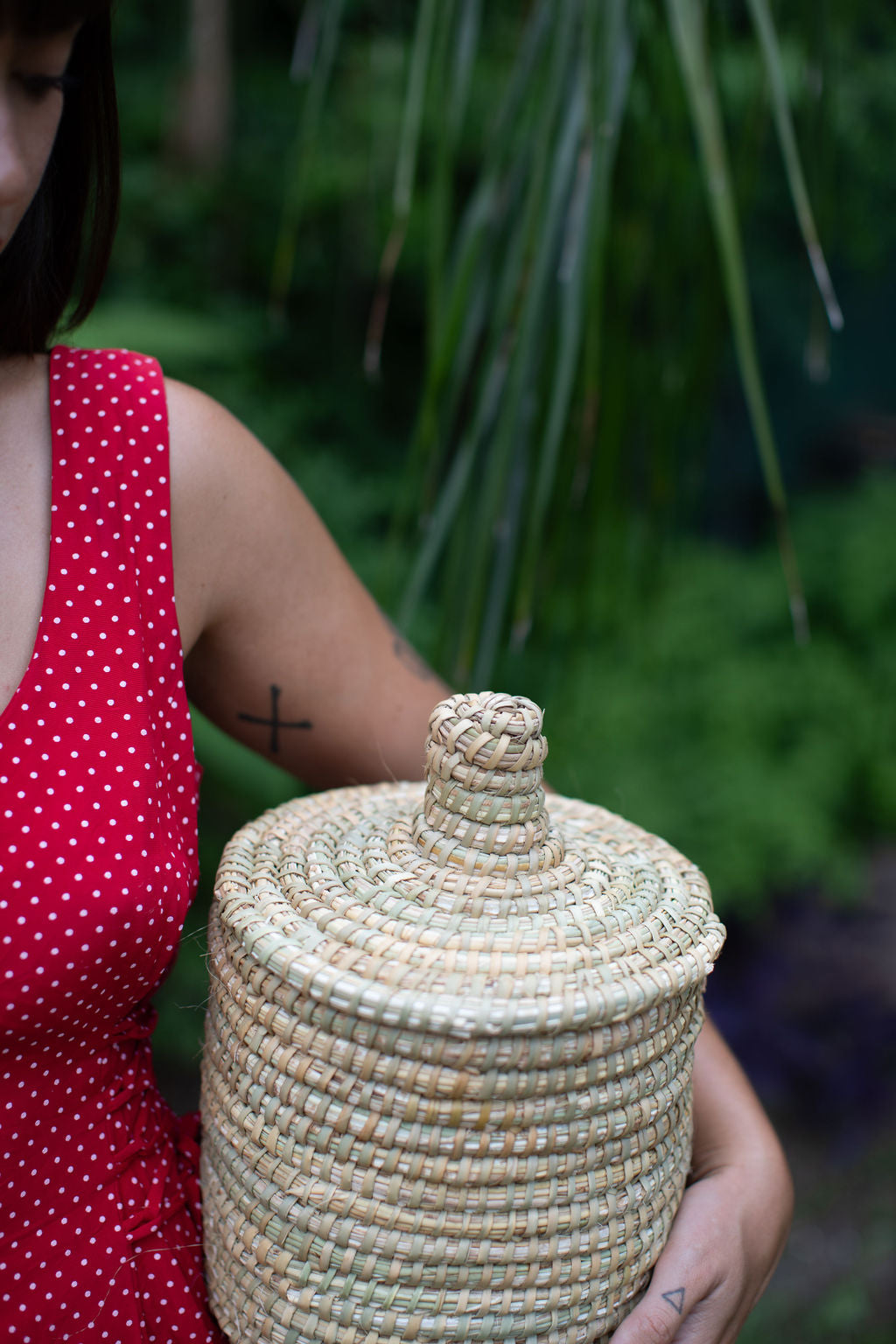This gorgeous Moroccan palm basket was handmade by Moroccan artisans using all natural palm. It's the perfect storage solution for any room in your home.